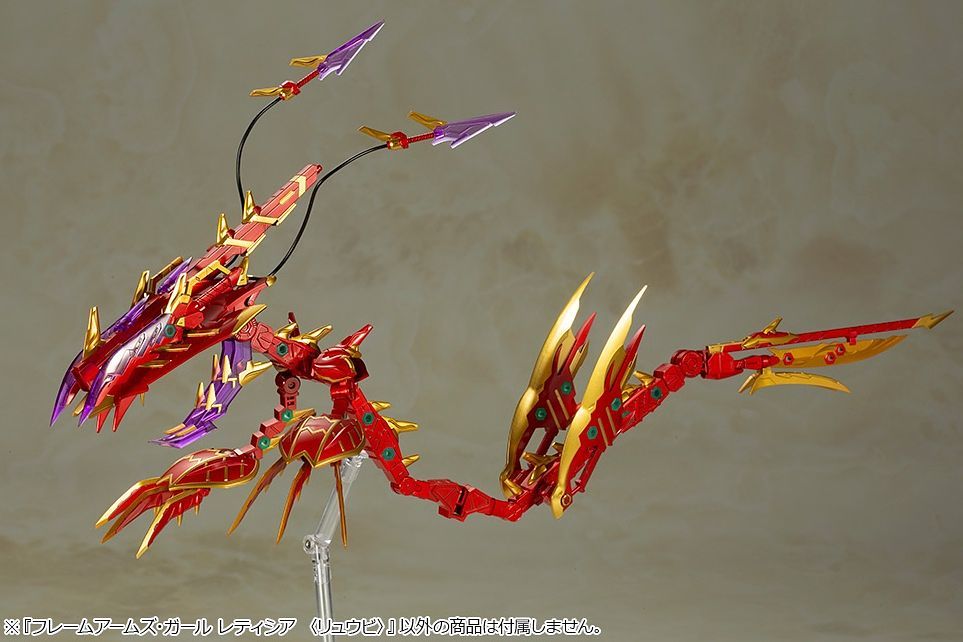 Laetitia sports metallic red and gold armor parts, while she herself has been given brown hair and eyes to match her updated armaments. She features many optional parts to give fans the ability to assemble and reassemble her into various forms.