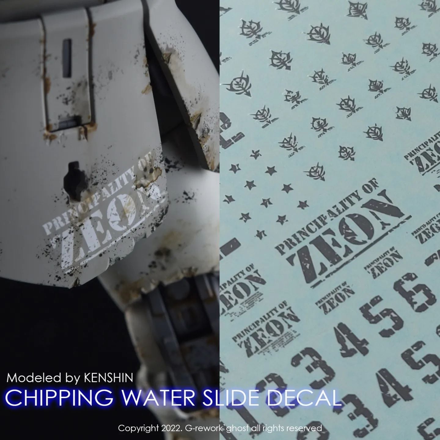 Decals that come pre-chipped! Perfect to put on your weathered kits, and for a bit of flair.