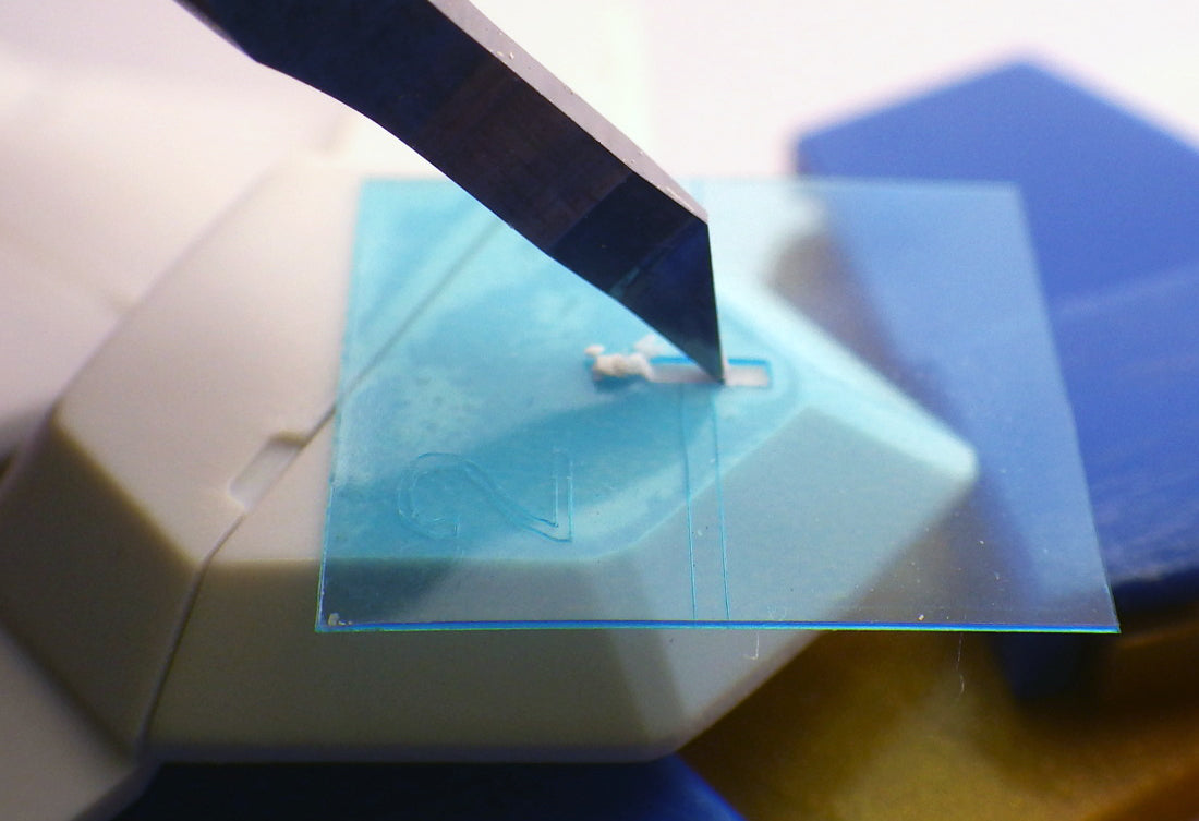 Please ensure that the surface you are scribing is free from grime and dust. If you're like me and want to make the most value for money for these templates, you can use sticky tape after each scribe to remove the plastic shavings that may be trapped on the adhesive. From my experience, this template can be re-used up to 4 times before losing its' shape or adhesion.