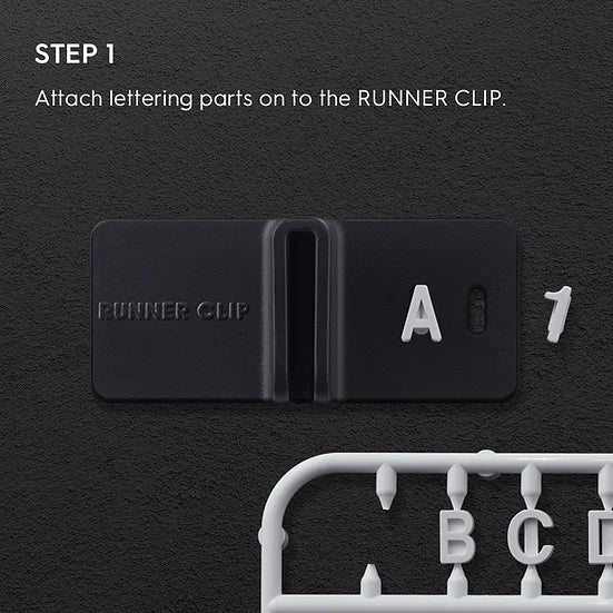RUNNER CLIP is the market’s smallest minimalistic runner stand that saves working space and provides convenience and practicality. This kit includes number and letter tags that can be attached to each clip, and a total of ten clips are included.