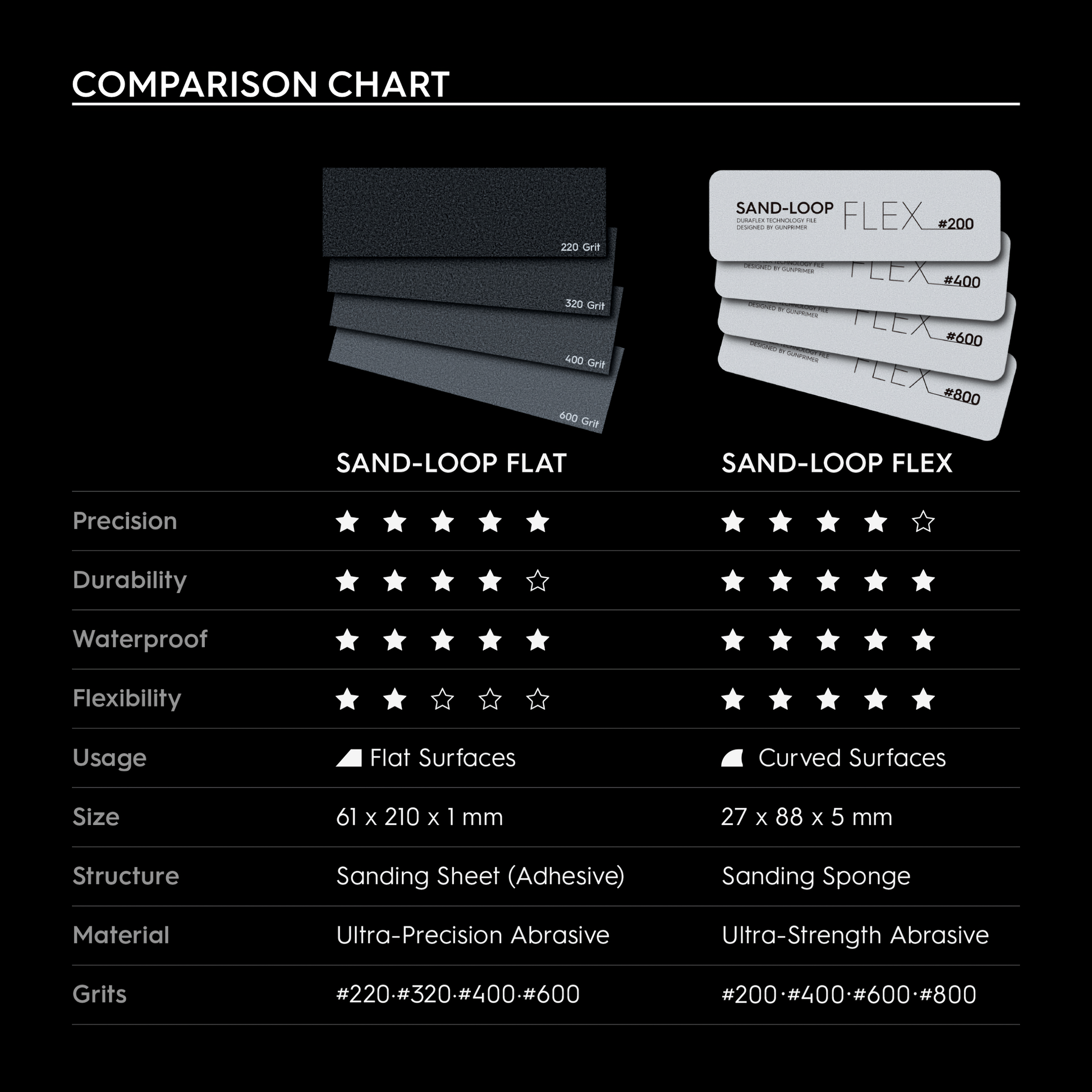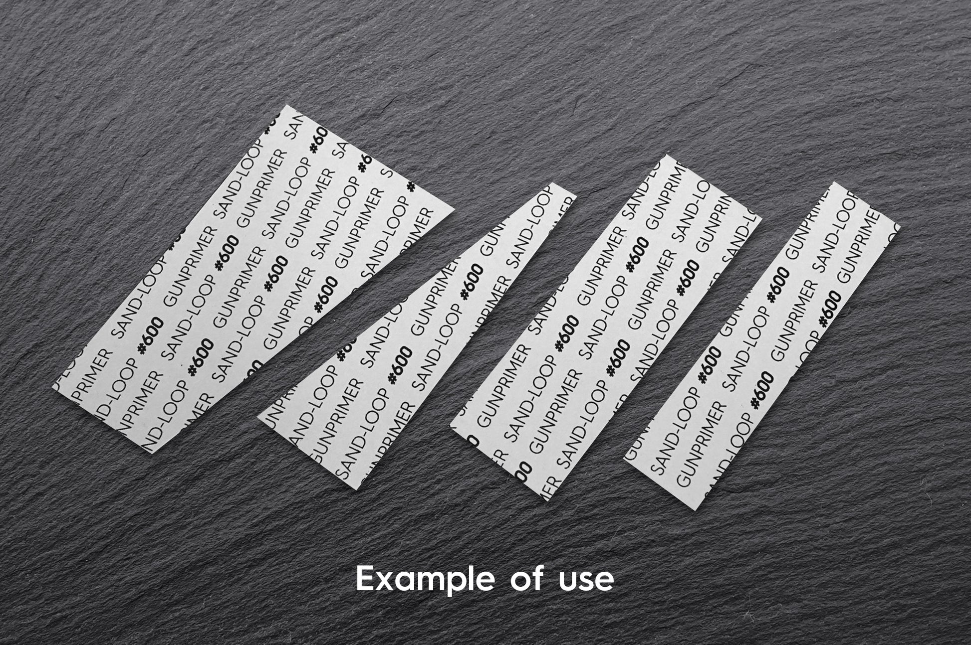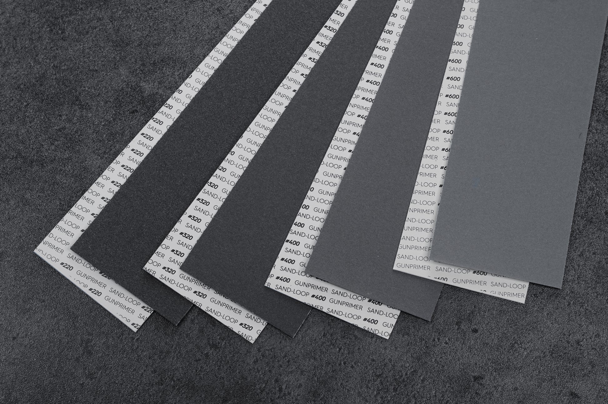 SAND-LOOP FLAT is Gunprimer's version of high-durability sandpaper. It's based on the ultra-precision sandpaper used on semiconductor manufacturing processes, which has superior durability and grinding capability compared to conventional sandpapers.