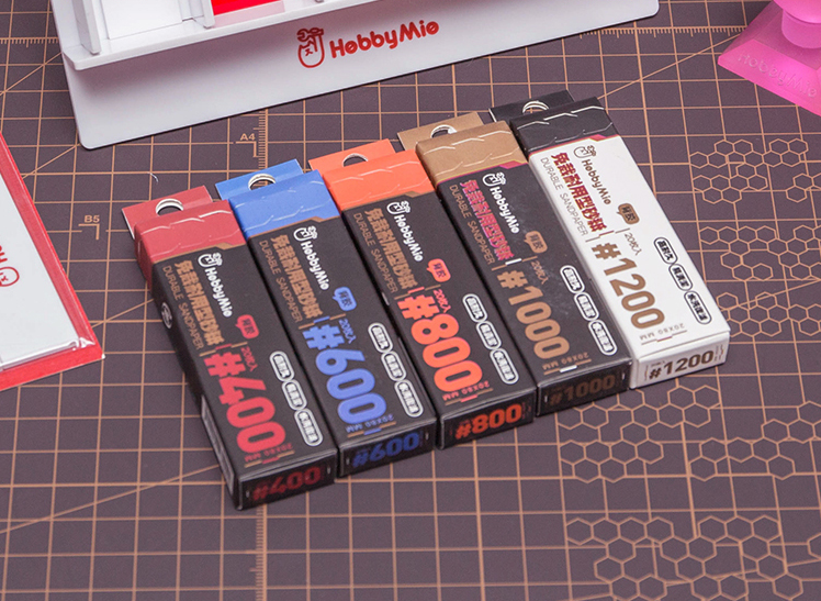 Hobby Mio's durable sandpaper comes in a pack of 20, and at a great price point. Perfect for beginners who are starting to get into sanding, or advanced modellers looking for a bang for their buck. It has a sticky backing, so you can stick it to a sanding stick of various sizes if need be.