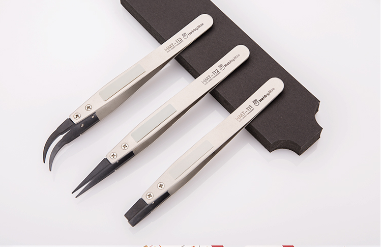 Tweezers! You can use them to pick up decals and those pesky metal parts lying around. These tweezers has anti-static tips, which makes it perfect to handle electronics and fragile photo-etch parts.