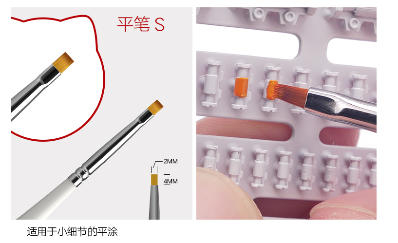 These brushes are made from synthetic brush material just like Godhand brushes, which makes the brushes more resistant to corrosives such as thinners, and retains their shape after prolonged use. No more hair sticking out of your paint brushes!