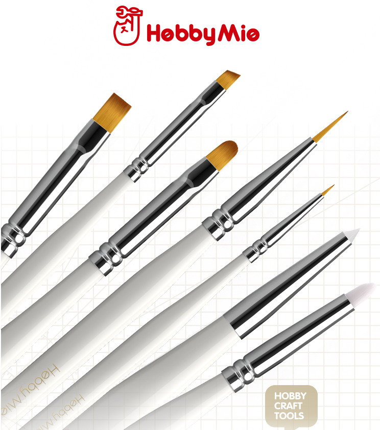 Mini painters rejoice! Hobby Mio now has their own lineup of painting brushes, with various tip shapes and sizes for all your handpainting needs!