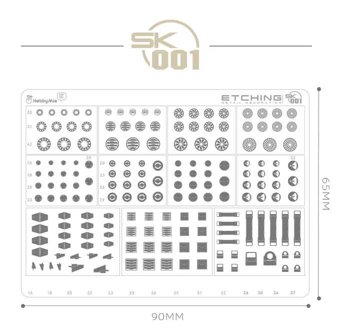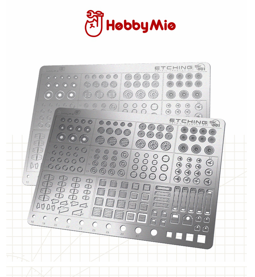 The Hobby Mio PE Detail Upgrade Parts consists of many awesome designs with various dimensions to suit any scale. Works for Gunpla and other scale models!