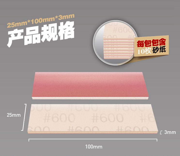 Comes in 320, 400, 600, 800, 1000, 1500, and 2000 grit forces.