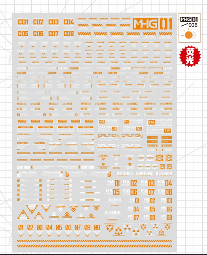 Hobby Mio - Waterslide Decals MHG Series 1: Caution Decals (UV)